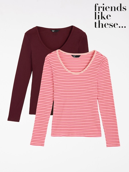 Friends Like These Red/Pink Rib Scoop Neck Top 2 Pack