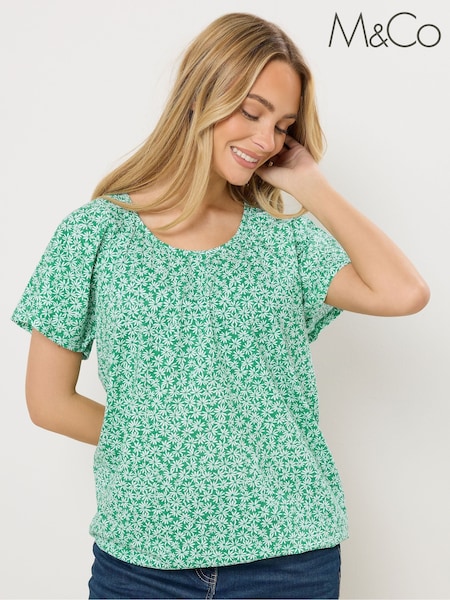 M&Co Green Mini Floral Scoop Neck Top