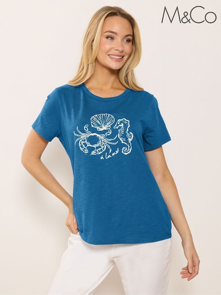 M&Co Blue A La Mer Graphic Print T-Shirt