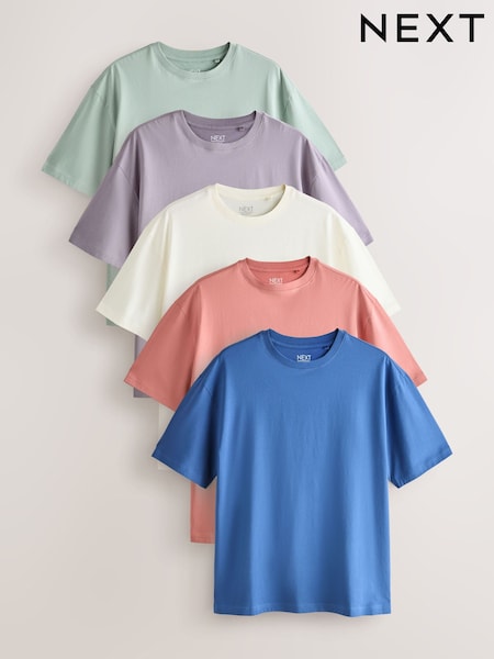 Mint/Lilac/Ecru/Coral/Blue Essential Cotton T-Shirts Relaxed Fit 5 Pack