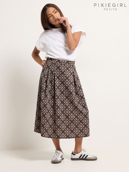 PixieGirl Petite Blue Daisy Belted Midi Skirt