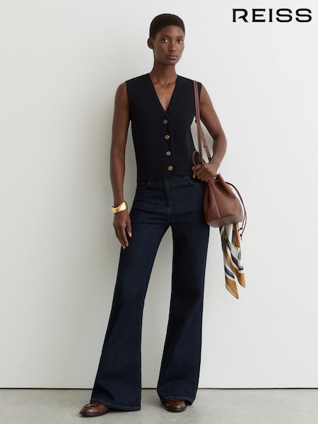 Reiss Navy Ria Textured-Knit Button-Through Waistcoat