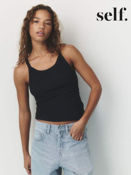 self. Black Square Neck Vest