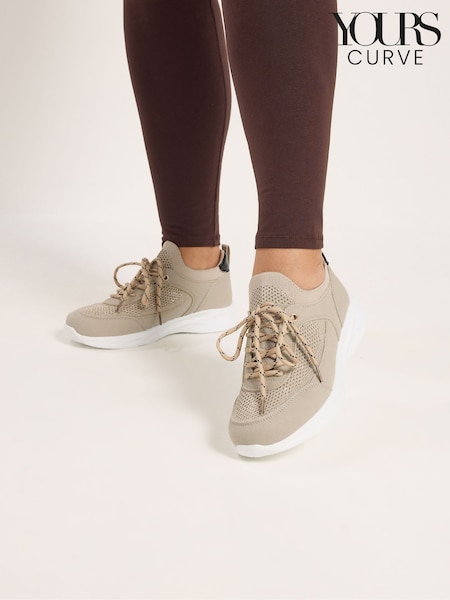 Yours Curve Natural EEE Extra-Wide Fit Knitted Trainers