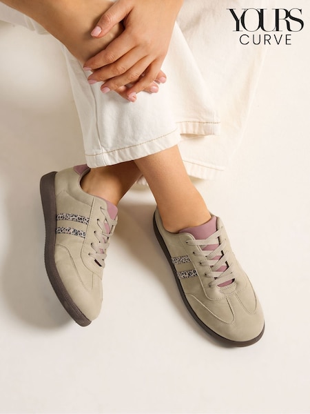 Yours Curve Natural Extra-Wide Fit Retro Stripe Trainers