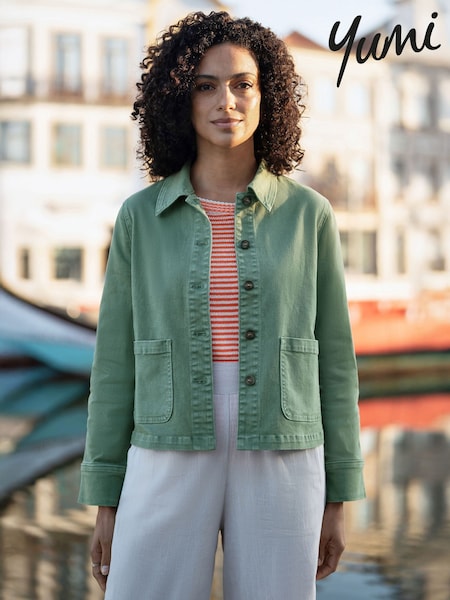 Yumi Green Stretch Cotton Denim Jacket