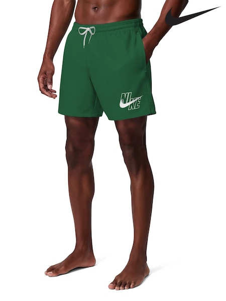 Nike Green Graphic Logo Swoosh 7 Inch Swim Shorts