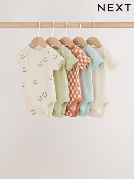 Multi Short Sleeve Baby Bodysuits 5 Pack