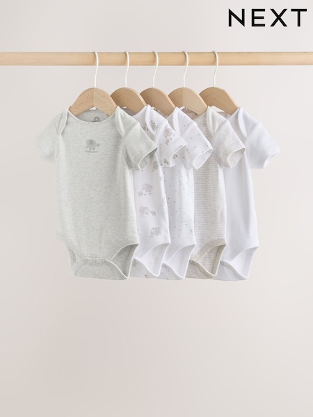 Grey Elephant Short Sleeve Baby Bodysuits 5 Pack
