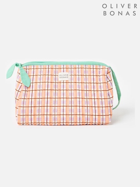 Oliver Bonas Pink & Green Check Wash Bag