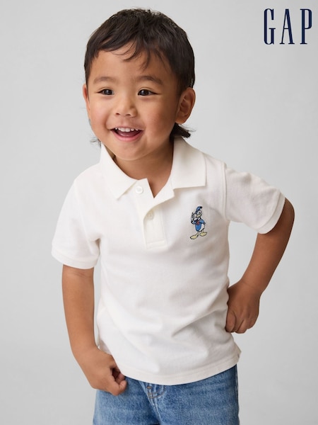 Gap White Donald Duck Disney Pique Polo Shirt (6mths-5yrs)