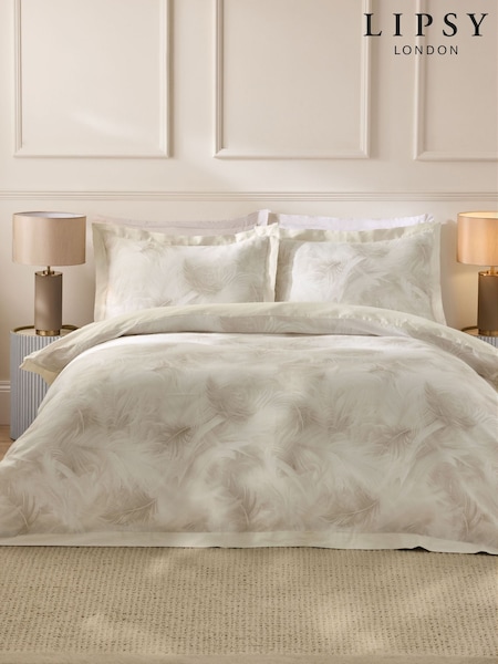 Lipsy Ferris Feather Natural 200 Thread Count Duvet Cover and Pillowcase Set