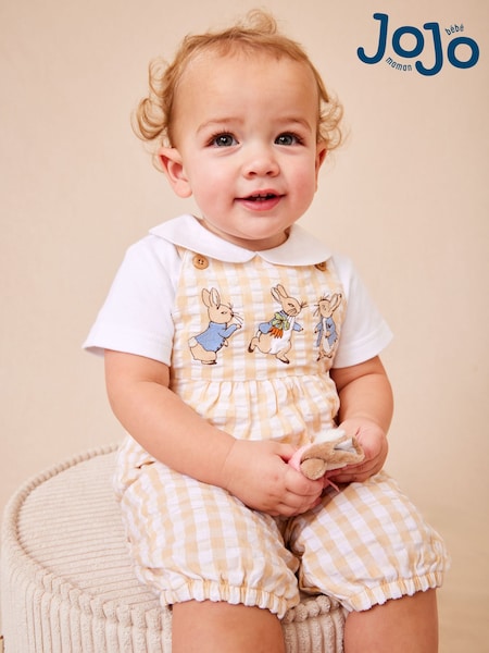 JoJo Maman Bébé Natural Peter Rabbit™ Checked Dungaree & Body Set