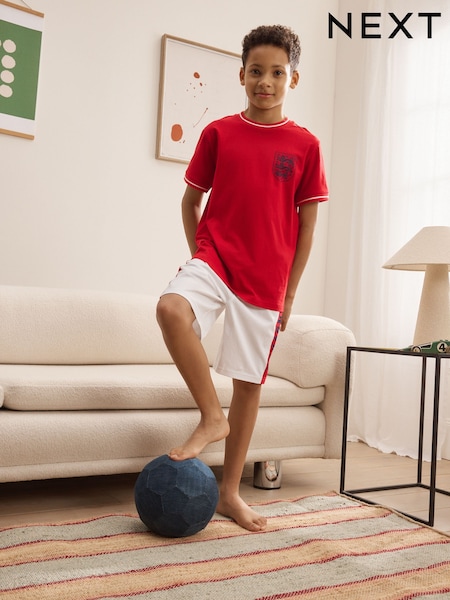 Red/White England Single Short Pyjamas (3-16yrs)