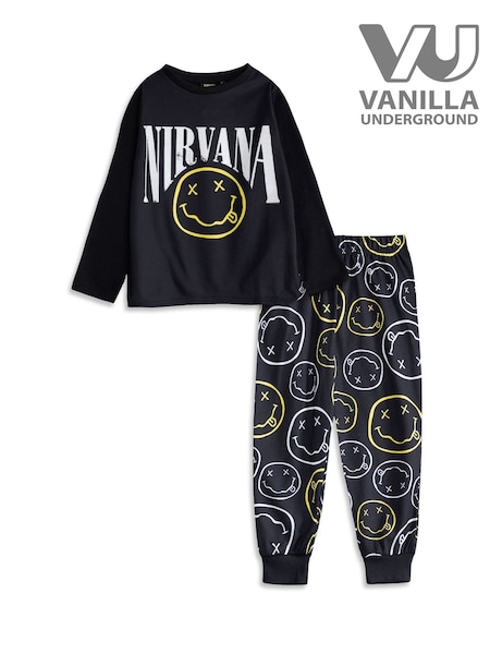 Vanilla Underground Black Nirvana Logo Long Sleeve Long Leg Pyjamas Set