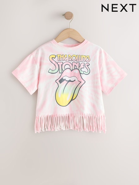 Pink Tie Dye Rolling Stones Fringe Band T-Shirt (3-16yrs)