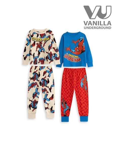 Vanilla Underground Blue Marvel Spiderman Cotton Long Sleeve Leg Pyjamas Set Multi Pack of 2
