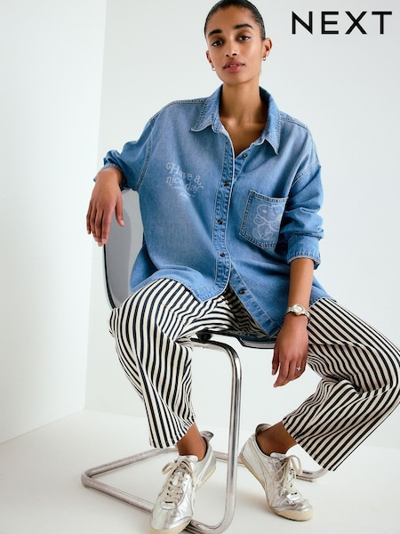 Mid Blue Snoopy License Relaxed Fit Long Sleeve Denim Shirt