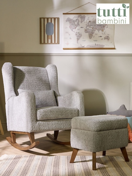 Tutti Bambini Teddy Cloud Grey Harper Wingback Rocking Nursing Chair & Footstool