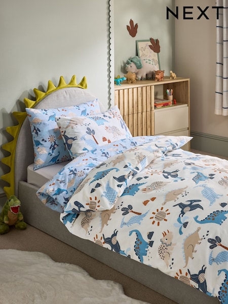 2 Pack Blue Dinosaur Duvet Cover and Pillowcases Set