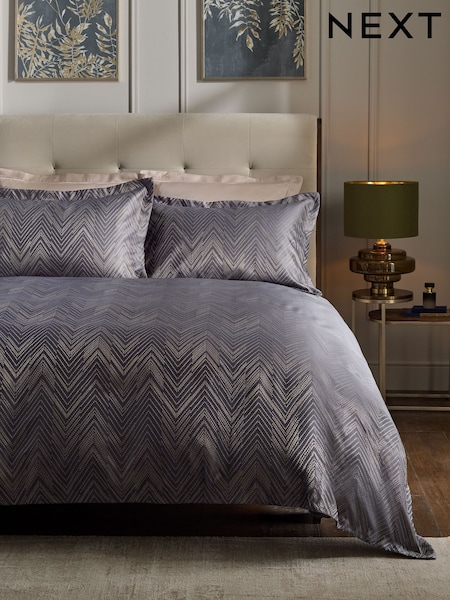Black Jacquard Chevron Duvet Cover and Pillowcase Set