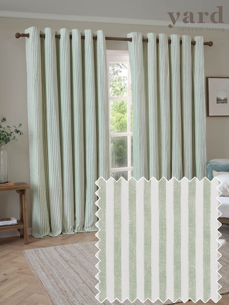 Yard Eucalyptus Hebden Striped 100% Cotton Lined Eyelet Curtains