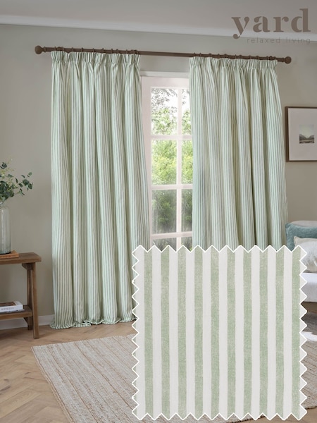 Yard Eucalyptus Hebden Striped 100% Cotton Lined Pencil Pleat Curtains