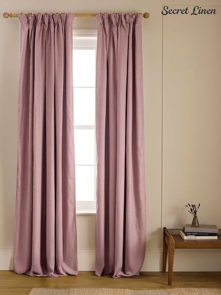 Secret Linen Store Blush Pink Twill Cotton/Linen Blackout Curtains Pair
