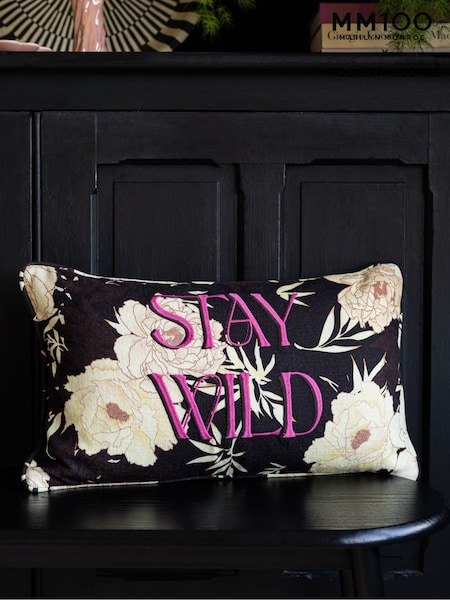 Rockett St George Pink Stay Wild Embroidered Slogan Printed Cushion