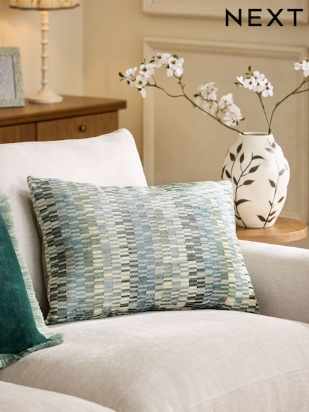 Green 40 x 59cm Cut Velvet Geo Zig Cushion