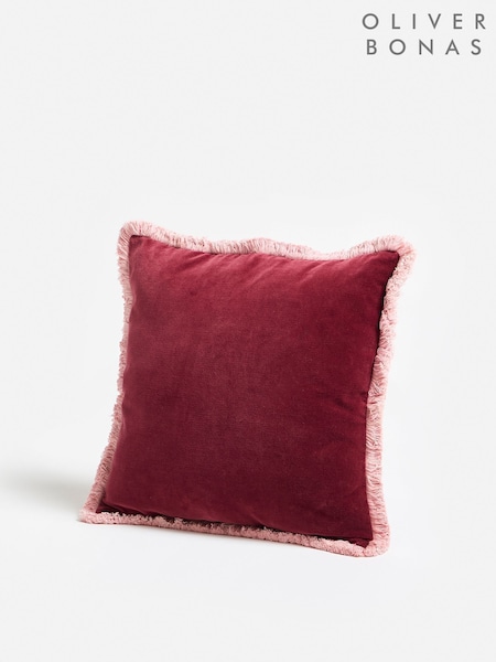 Oliver Bonas Red Issey Light Velvet Fringed Cushion Cover 45x45cm