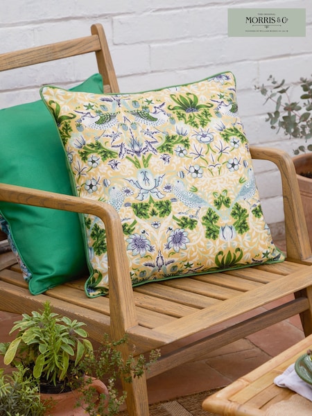 Morris & Co Mineral Yellow Strawberry Thief Piped Outdoor Cushion
