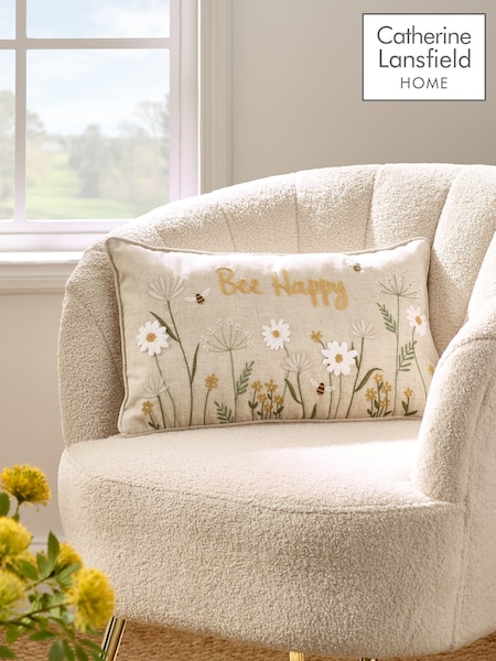 Catherine Lansfield Natural Bee Happy Embroidered Cushion