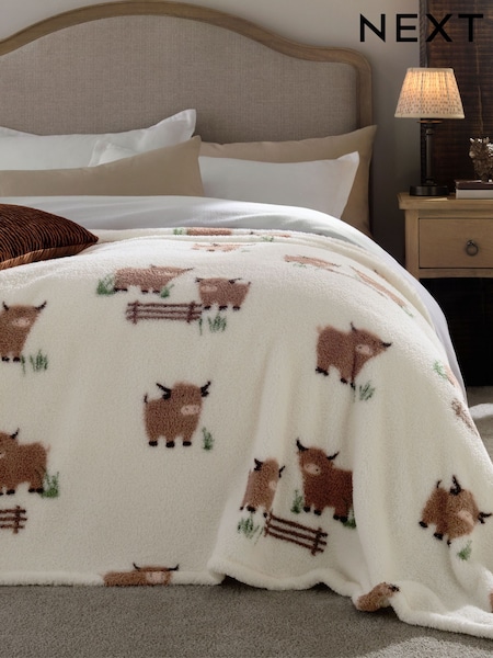 Natural Hamish The Highland Cow Fleece Throw