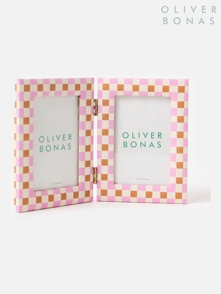 Oliver Bonas Pink Agns Burnt Orange Check Double Picture Frame 4x6