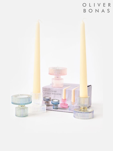 Oliver Bonas Clear Kyto Lustre Candle Stick Holders Set of Four