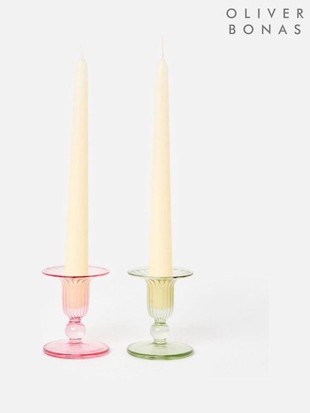 Oliver Bonas Set of 2 Pink Lucia Glass Candlestick Holders