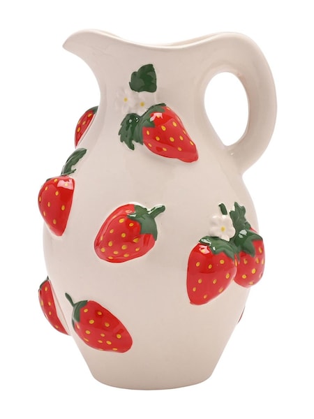 Widdop White Hand Painted Jug Vase - Strawberry