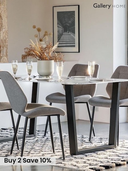 (34)Marble effect dining tables are sure to impress, creating a striking centrepiece in your kitchen or dining room. With their perfect mix of easy maintenance and high-end style, a white marble dining table can instantly add a touch of luxury to any dining space. Whether you prefer to fill your space with a large marble table or adapt to guests with a modern extendable style; we have a varied selection to suit all families. Choose a timeless marbled surface to add an elegant and refined piece to your home. Match with a coordinating set of dining chairs for a sleek, contemporary finish.