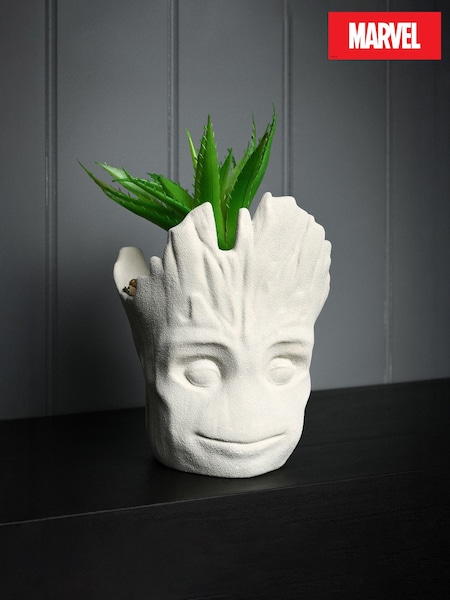 Marvel White Groot Planter With Faux Plant