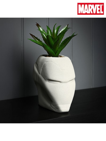 Marvel White Iron Man Planter With Faux Plant