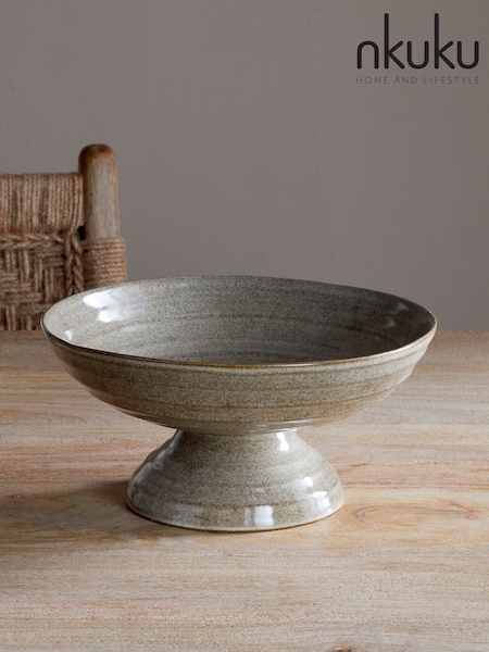 Nkuku Grey Valinha Earthenware Footed Bowl