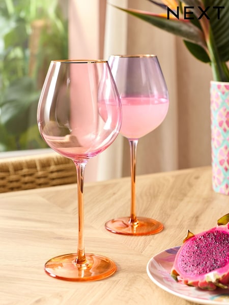 Set of 2 Pink Purple Tinted Wine Glasses