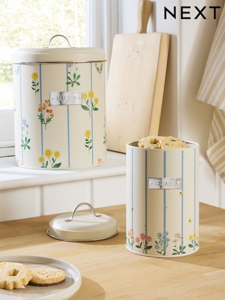 Set of 2 Natural Maisie Floral Print Bread Bin and Biscuit Tin