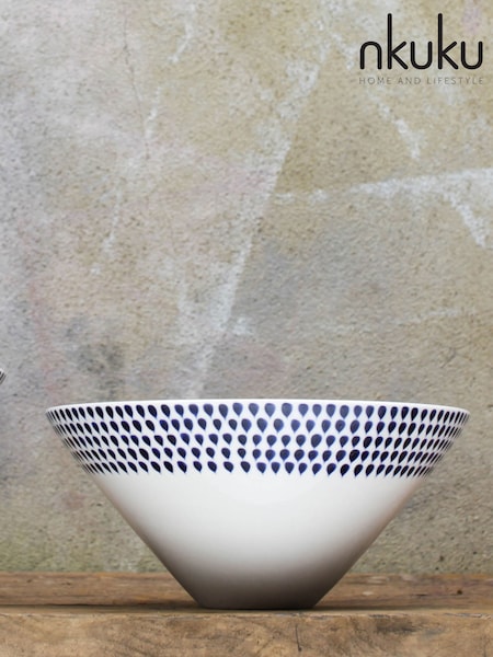 Nkuku Cream and Indigo Drop Serving Bowl