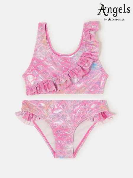 Angels By Accessorize Pink Sparkle Frill Mermaid Bikini Set