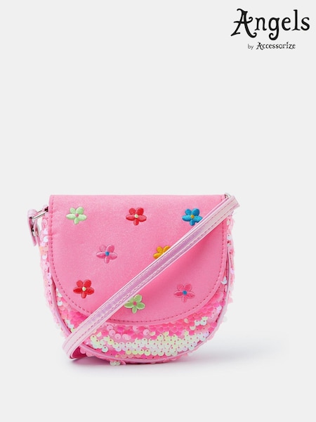 Angels By Accessorize Pink Girls Floral Embroidered Sequin Bag