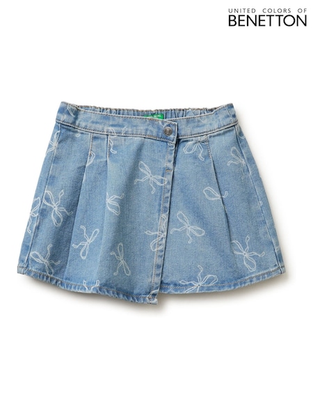 Benetton Bow Print Denim Blue Skirt