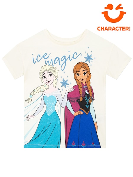 Character White Disney Frozen Anna And Elsa T-Shirt Ice Magic