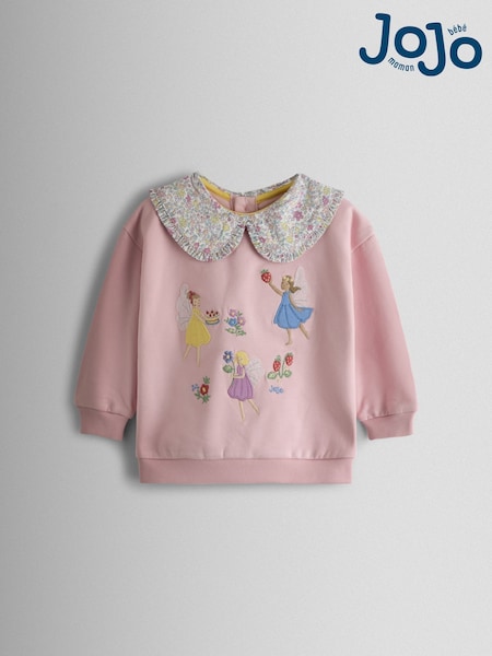 JoJo Maman Bébé Pink Fairy Appliqué Collared Sweatshirt